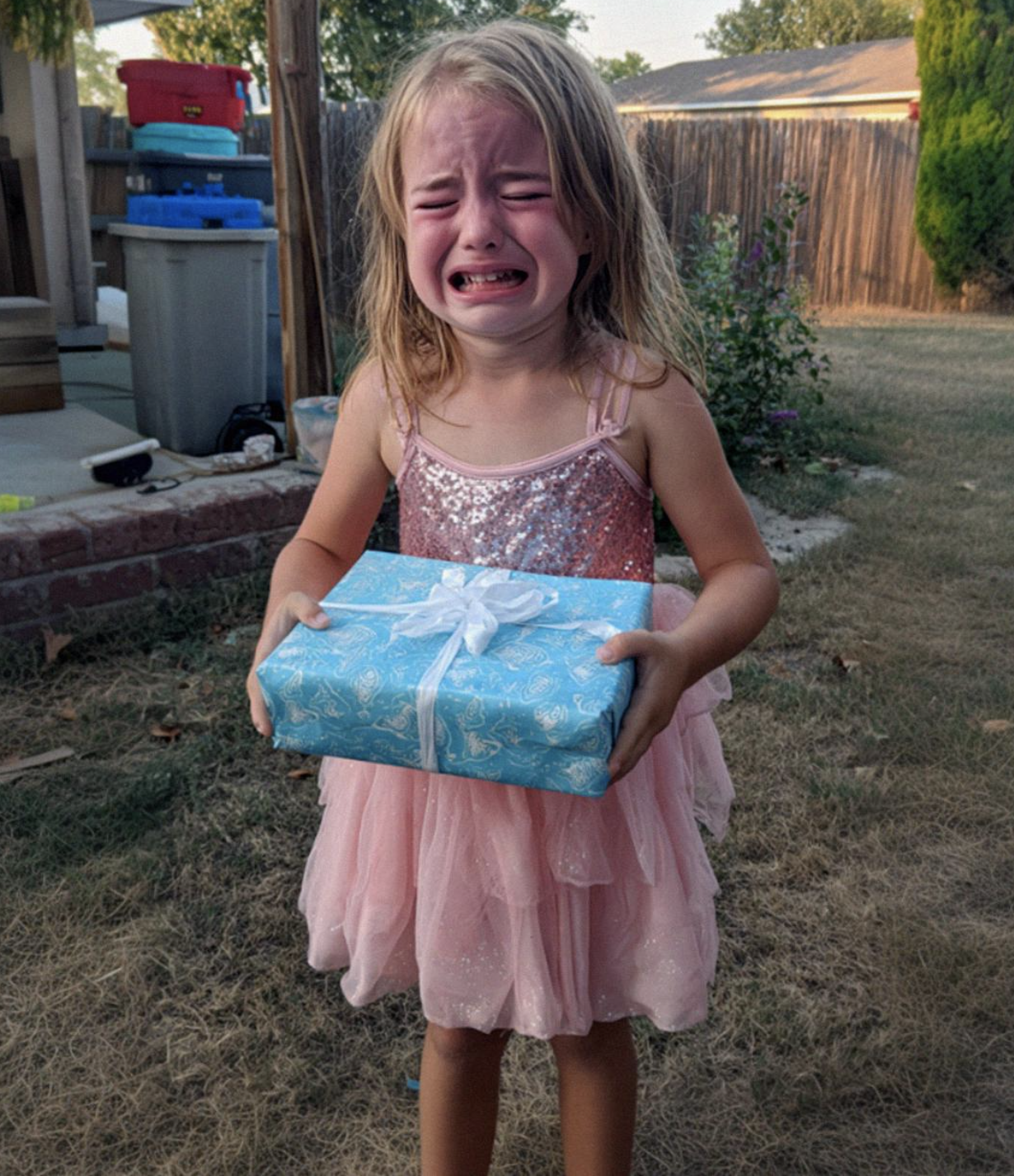My little girl’s cheeks were blotchy and wet, her eyes red and swollen. Her sparkly dress had grass stains along the hem.The sight of her cracked something open in me.