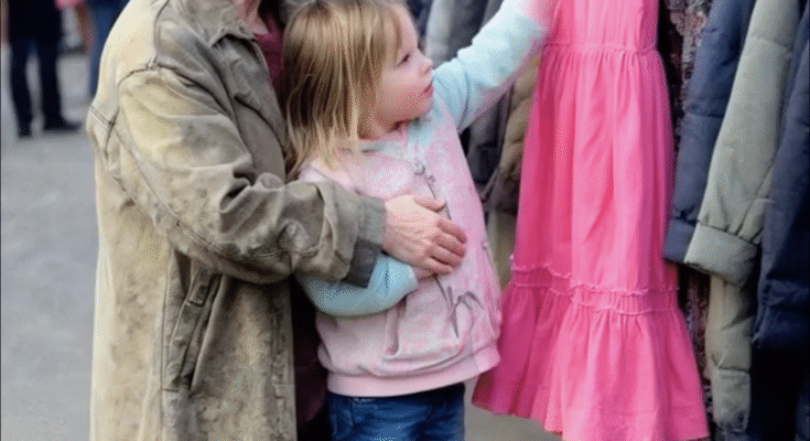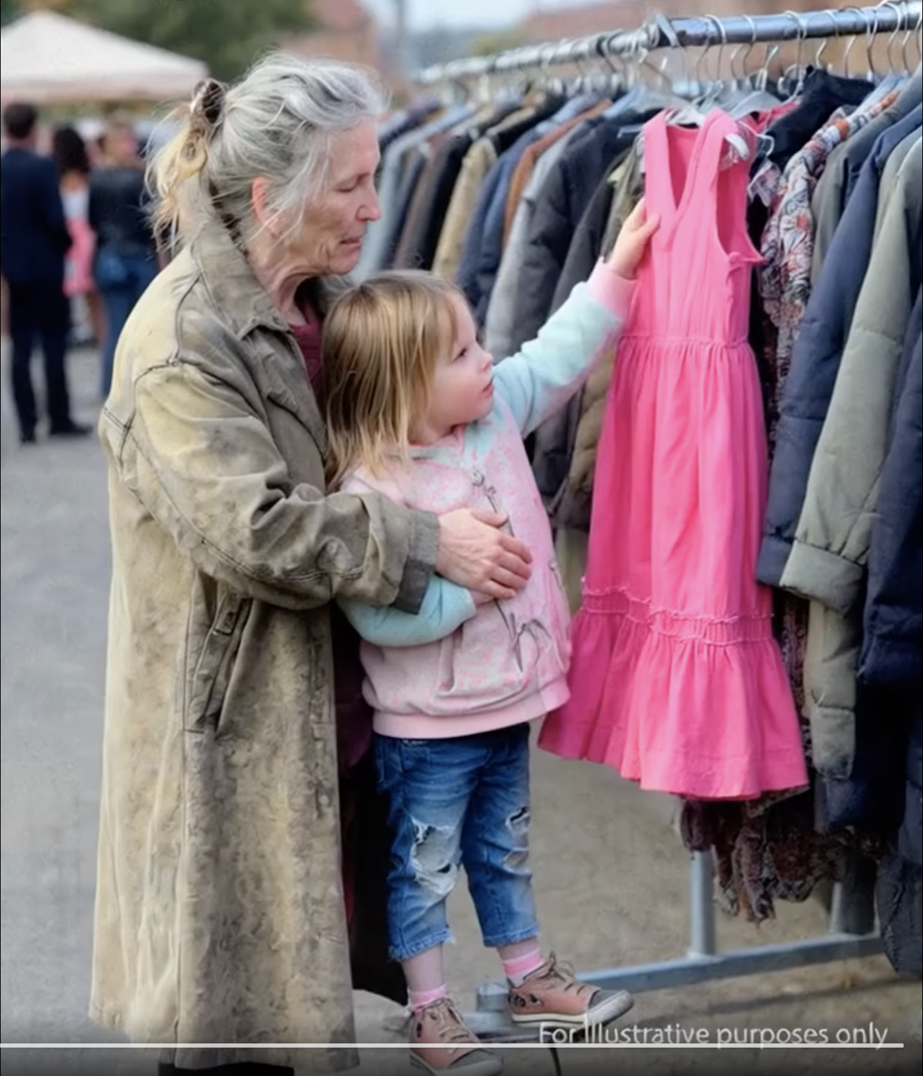 A grandmother and a little girl, maybe five years old. Her coat was too thin for the chill, her sneakers peeling at the toes. She clung to her grandmother’s hand, but her eyes sparkled as they passed a clothing rack.