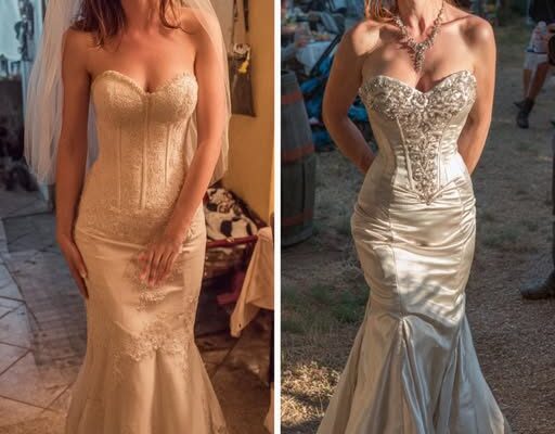 Not just white. It was a full-length, lacy, mermaid-style gown with a beaded bodice and a train. A literal wedding dress.